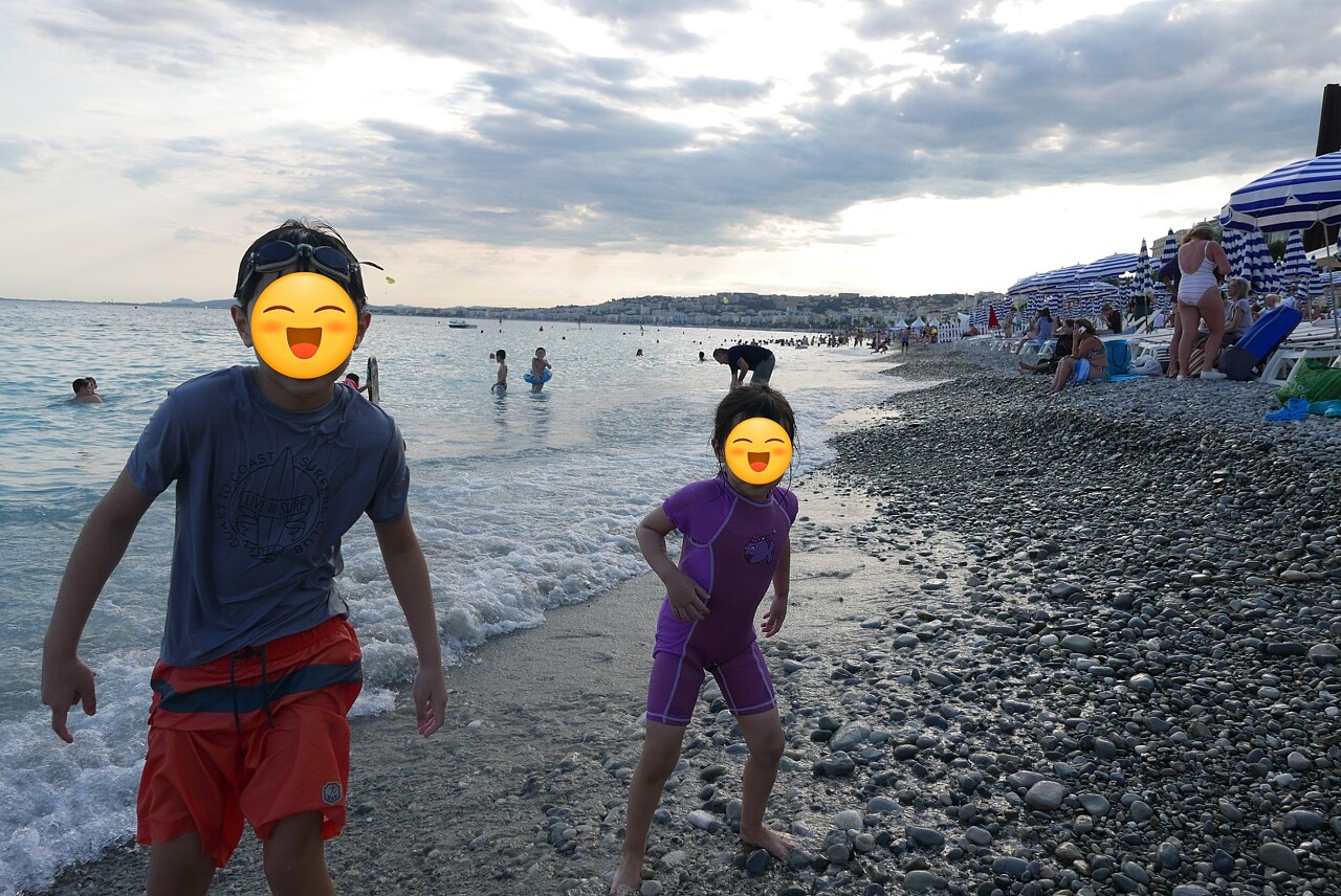 이런 저런 니스 방문을 마치고 저희 가족이 한 일은 늦은 저녁에 니스 해변에 가서 온가족이 해수욕을 한 일인데요.