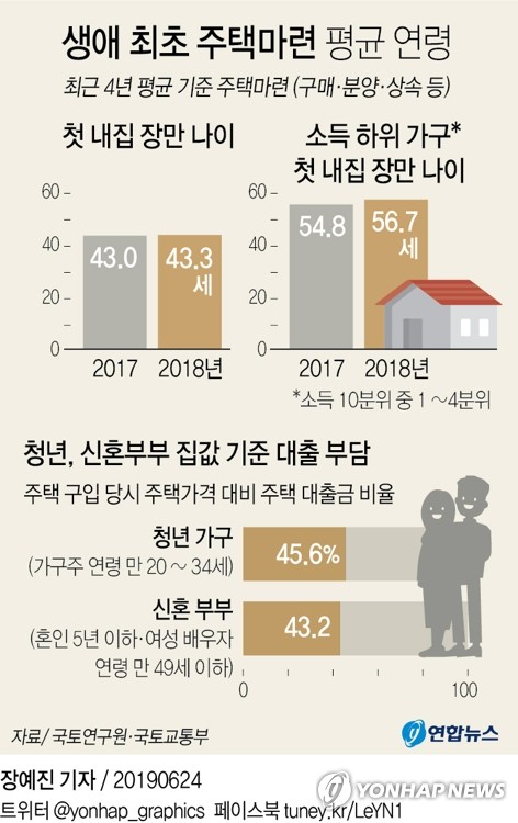 반면 한국의 평균과 비교해보면, 4년전이지만 2019년 한국의 평균은 생애 최초 주택마련 평균 연령을 보자면요.
